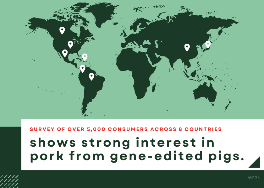 - 94% of consumers indicated they are open to purchasing pork from gene-edited pigs