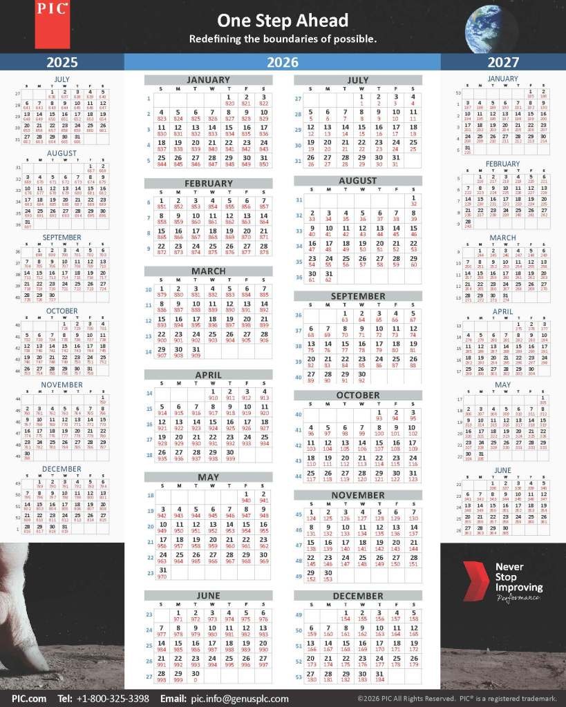 Please see below for downloadable pdf versions of the PIC 2026 thousand-day calendars.
